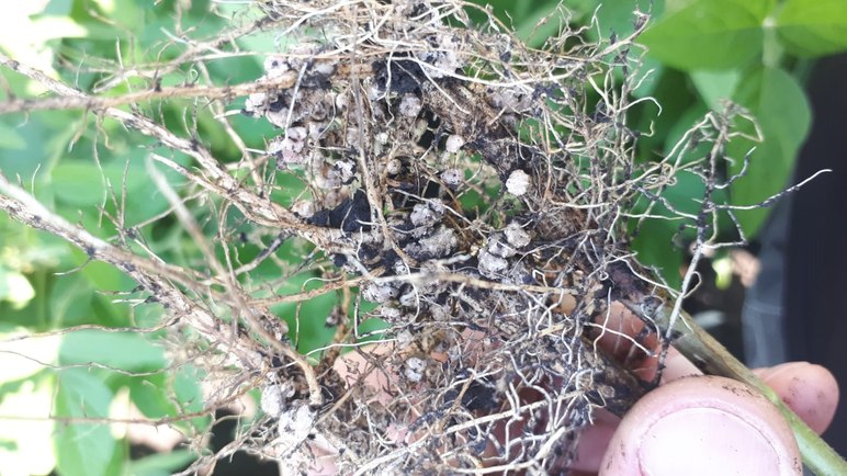 Как и все бобовые, эта культура усваивает азот из воздуха, благодаря симбиозу с клубеньковыми бактериями рода Rhizobium, Bradyrhizobium japonicum и другими. Клубеньки фиксируют атмосферный азот N2 и переводят его в доступную для растений форму - NH4. Растение «кормит» бактерии, а взамен получает азотное питание. У такого симбиоза сразу два эффекта: соя обеспечивает себя азотом и оставляет последующей культуре в почве до 100 кг/га доступного азота, который активизирует почвенную микрофлору и помогает усваивать другие питательные элементы.
