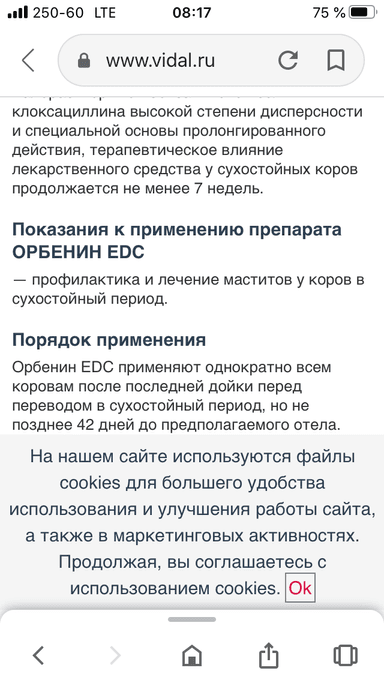 Я вот не понимаю зачем сушить корову обычным лекарством от мастита Мастиет Форте 12 часового действия это же 👎🏻 даже если она должна телится в течении 30 дней орбисил дс сделает это намного лучше 28 дней и 6 или 8 доек после отёла! Ну да критиковать такое не надо надо промолчать или просто запустить без препарата эффект будет одинаковый!