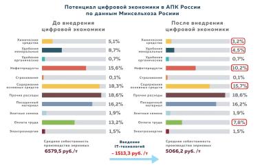 По данным Минсельхоза России средняя стоимость производства зерновых культур составляет в среднем 6579,5 руб./т, а в хозяйствах, использующих точное земледелие она составляет 5066,2 руб./т. - достигается экономия до 30%.