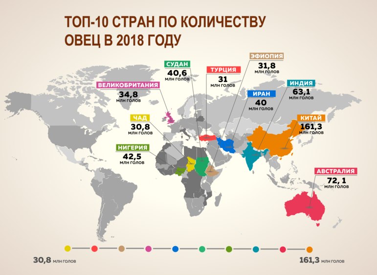 Топ 10 стран по количеству овец в 2018 году