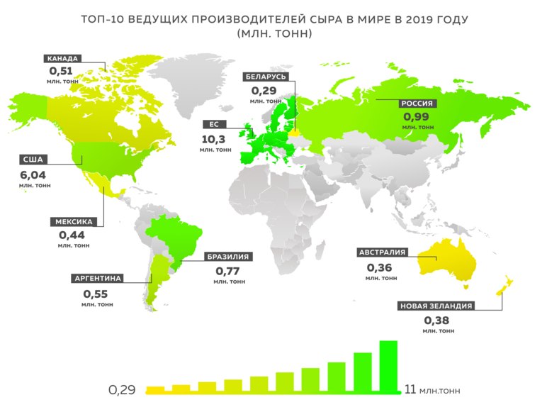 Топ - 10 ведущих производителей сыра в мире в 2019 году