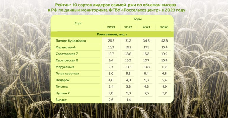 🌾 Наиболее востребованы среди сортов озимой ржи в 2023 году: