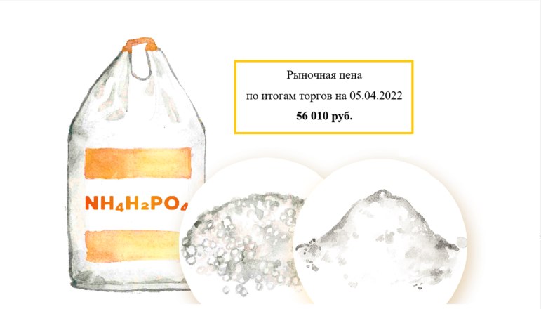 Произошло повышение цен на аммофос. 05.04.2022 стоимость данного удобрения поднялась до 56 010 руб за тонну.