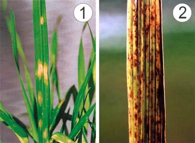 - признаком заболевания кукурузы является побеление верхушек листьев, между жилками которых образуются желтые хлоротичные полосы, а вновь образующиеся листья имеют светлую окраску.