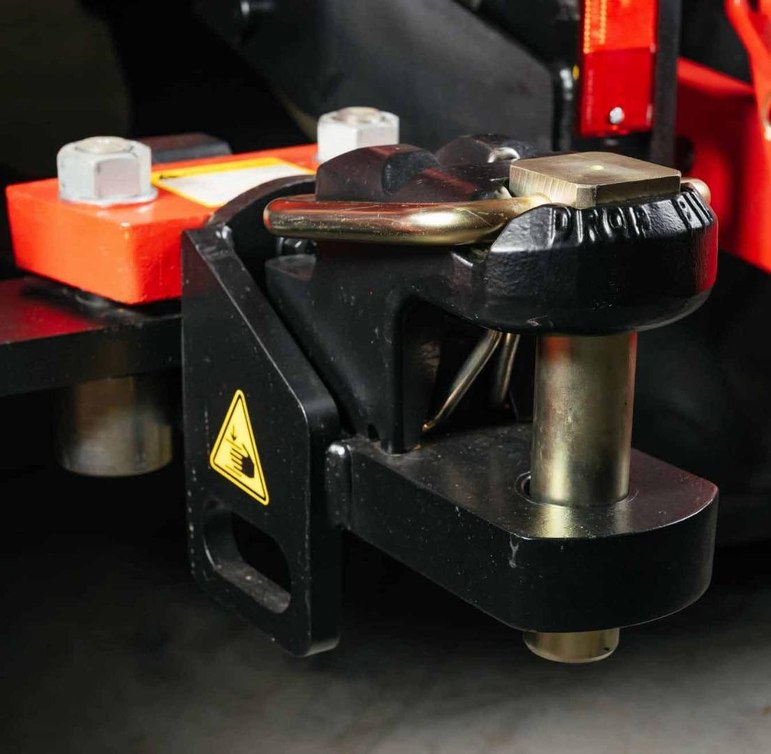 Сегодня мы расскажем о тяговом брусе на данной агромашине. Его максимально допустимая вертикальная нагрузка 2 722 кг, он оснащен пальцем 51 мм (CAT IV). Это обеспечивает наиболее эффективную работу с прицепными орудиями.