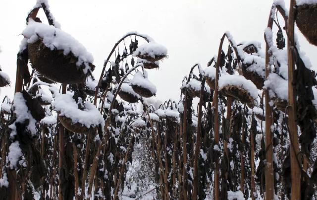 Уборка подсолнечника зимой