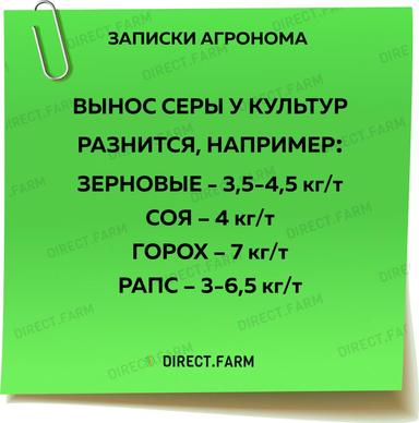 - Зерновые культуры имеют среднюю потребность в сере. Вынос зерном и соломой 3,5-4,5 кг/т;