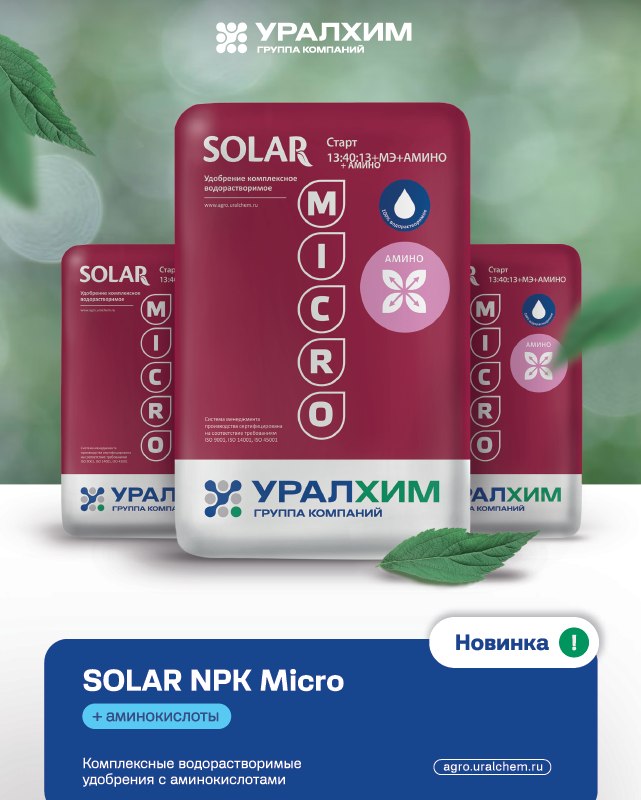 Удобрения SOLAR NPK micro+Амино: работают на финансовое благополучие вашего бизнеса!