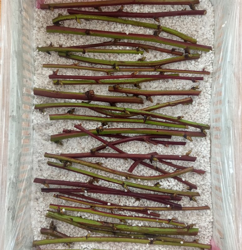 6. Раскладываем черенки в один слой, как на фото. Если делать несколько слоев, будут неодинаковые условия укоренения, что то может загнить.