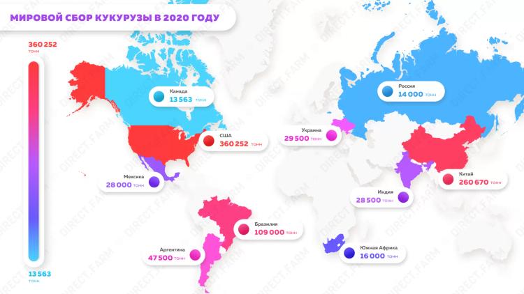 ✅ Сейчас, в 2020 году, на момент 7 октября, кукуруза на зерно в РФ обмолочена с площади 1,1 млн га или 39,2% к посевной площади, намолочено 5,5 млн тонн при урожайности 48,5 ц/га (по данным ).