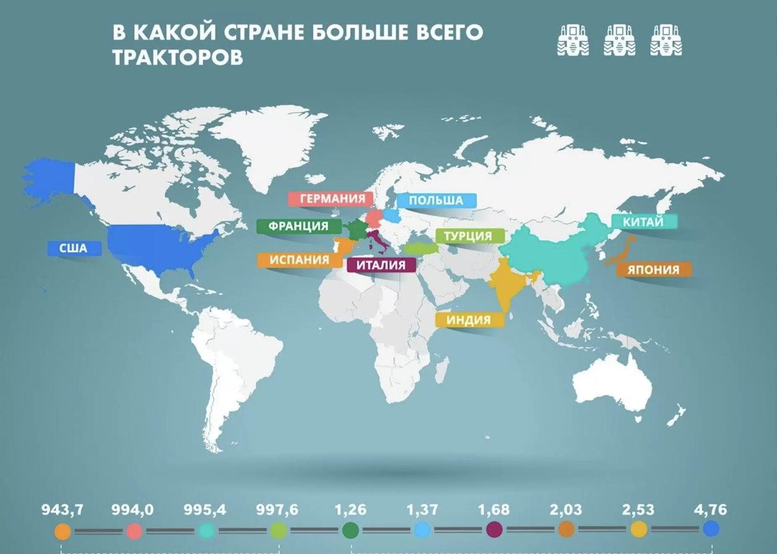 Современное сельское хозяйство – это не только бескрайние поля и люди, обрабатывающие землю, но и многочисленная сельхозтехника, выполняющая огромную долю работ. Ранее мы уже предоставляли информацию о количестве техники в автопарке России. Давайте теперь рассмотрим 10 стран-лидеров по количеству колесных и гусеничных тракторов.