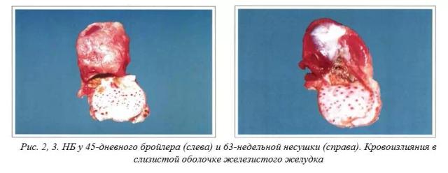 - Точечные кровоизлияния в слизистой оболочке железистого желудка (рис. 2, 3).