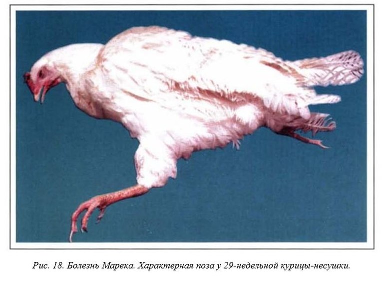 Болезнь Марека – вирусное заболевание хозяйственной птицы, вызывающее развитие новообразований. Для него характерно выраженное утолщение нервов, печень, почки, селезенка увеличены из-за развития лимфоидных опухолей. Экономический ущерб высокий. Хотя разработана достаточно эффективная специфическая профилактика (вакцинация), в настоящее время возможны спорадические и довольно крупные вспышки заболевания, поэтому необходим строгий контроль. Болезнь Марека поражает почти исключительно самок. По наблюдениям автора, чаще всего заражение происходит в период завершения полового созревания и начала яйцекладки, т.е. в 17-20 недель, хотя возможно и в более старшем возрасте, до 40 недель.