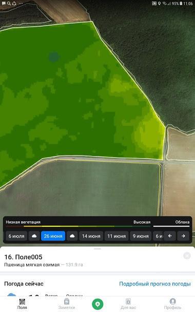 🔶 Также можно примерно знать однородность поля к уборке, если вести учет всех снимков по вегетации. И к уборке составить некий план работ, т.е. с какого поля начинать и каким заканчивать.