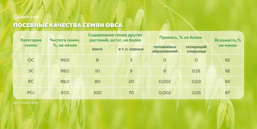 Овёс посевной (Avena sativa L.) - без остевидных заострений с двумя зубчиками. Подковки нет, площадка излома нижнего зерна прямая. При обмолоте ножка верхнего цветка остается при нижнем цветке.