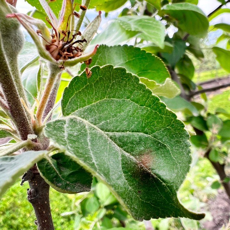 На текущий момент поражение отмечается преимущественно на листьях. Поэтому основная задача на сегодняшний день – остановить распространение и развитие болезни и защитить молодые плоды, поскольку поражение завязей приводит либо к их осыпанию, либо к сильной деформации и растрескиванию плодов во время роста.