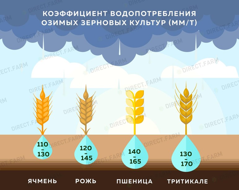 Представляем Вашему вниманию коэффициенты водопотребления озимых зерновых культур (мм/т). Ранее публиковали инфографику о водопотреблении яровых культур.