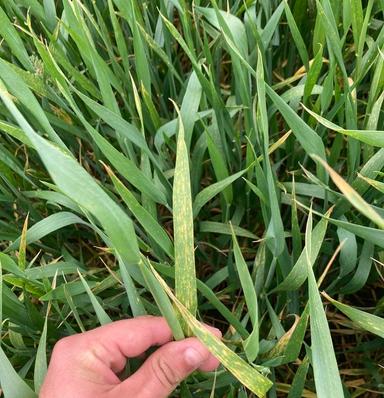 Что это может быть с пшеницей? Лист желтеет на пшенице на разных участках поля и по-разному вне зависимости от предшественника и обработки почвы.