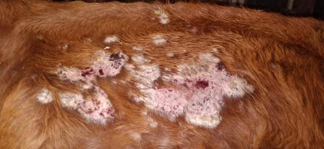 Доброго времени суток. Неделю назад купила корову. По анализам чистая. Ставили авитаминоз. Было вот так. На всякий случай обработала мазью ям и алюминспреем. Сейчас корки сошли, на месте корок кожа. Что еще можно предпринять?