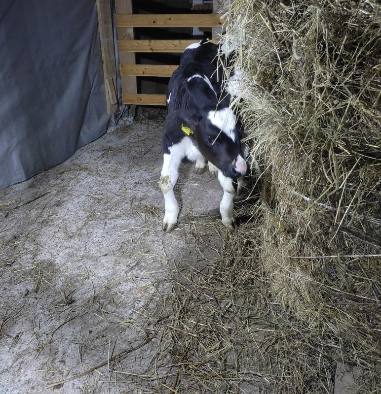 Рацион: зцм, сено, стартерный кк, зерно, дробленка, вода. Аппетит хороший. Содержание на глубокой теплой подстилке с ежедневными прогулками по бетонному полу (пока погода не позволяет вывести на улицу).
