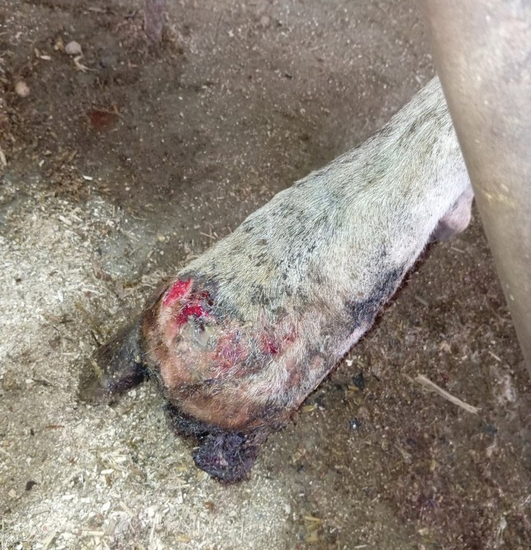 Здравствуйте. Пришла работать на ферму, тут такая ситуация с ногами, коровы сильно хромают, копыта выгнивают, у некоторых отваливаются, поражена кожа, там и скапливается гной, который имеет характерный запах. Копытник обрабатывает йодом однохлористым, ноги аж дымят, потом дёгтем, бинтует и оставляет дня на 2-3. Помогите, пожалуйста, советом, как обрабатывать, какие инъекции делать. Подскажите, что это, некробактериоз? Если нужны доп. фото, найду, скину.