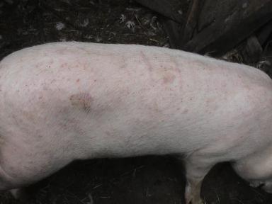Здравствуйте. Подскажите: семимесячные поросята, появилась сыпь на теле, ушах, плюс местами темные фиолетовые пятна (не рожа). Кололи байтрил, бицилин, энромаг, немного лучше, но после все по-новой.