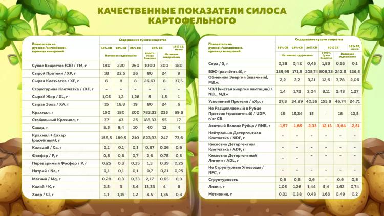Нормы скармливания сырого картофеля >>Силосованный картофель. Картофель можно силосовать, в таком виде коровы охотно поедают его. Подробнее о картофельном силосе, способах его заготовки, питательности и нормах скармливания >> ; качественные показатели картофельного силоса >>