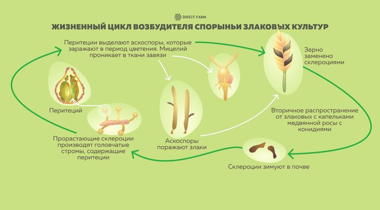 🔶Жизненный цикл спорыньи и симптомы у злаков