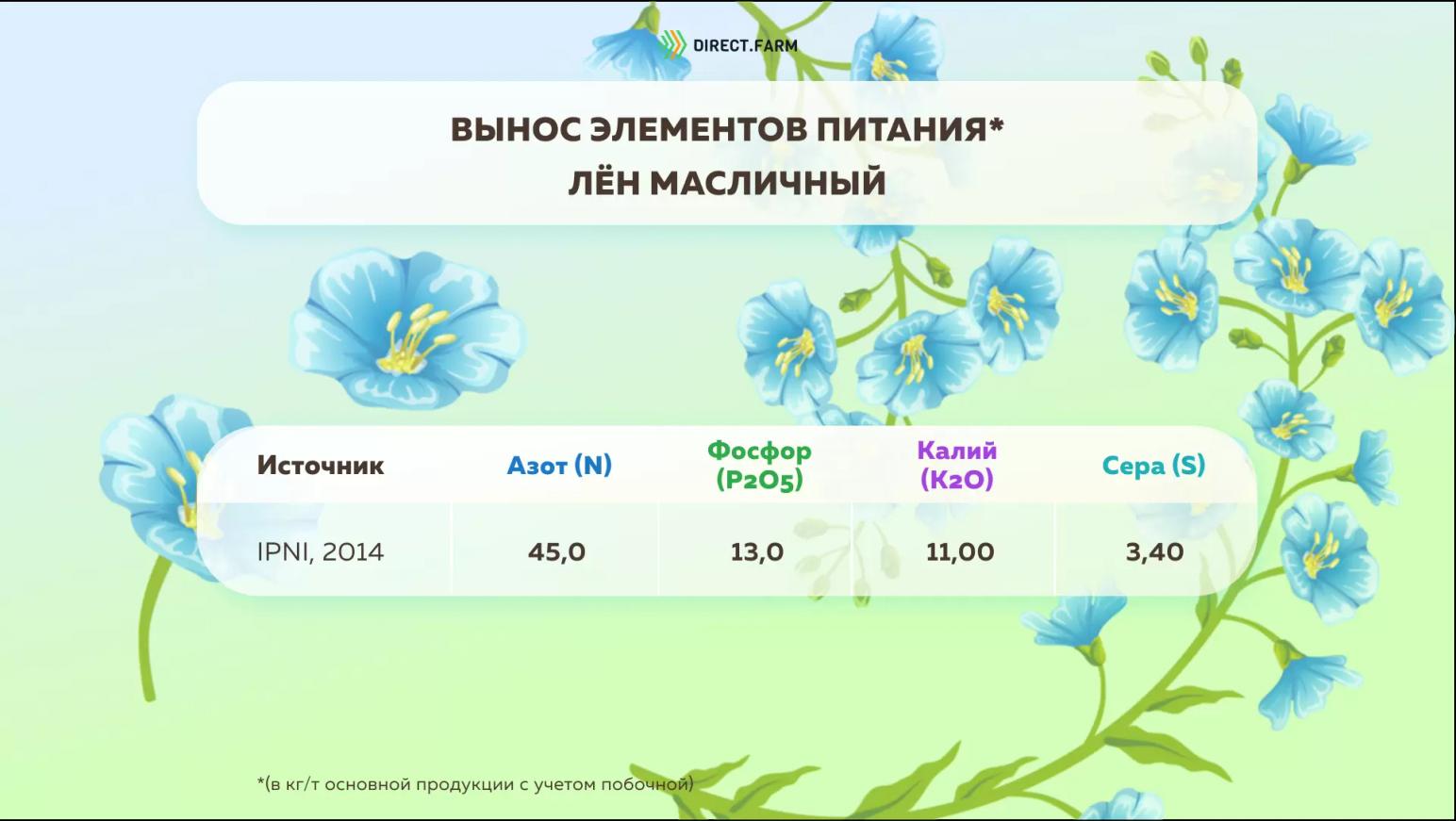 🔷 Вынос. В инфографике указывается вынос элементов питания льном масличным.