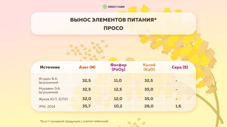 🔶 Потребление питательных веществ просом по фазам его развития происходит неравномерно: