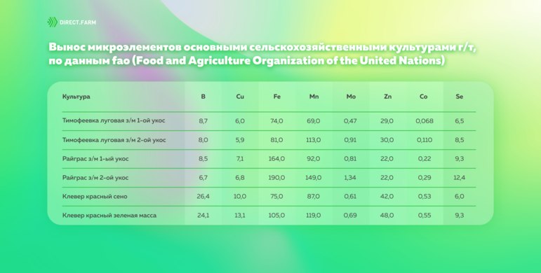 По данным FAO, вынос микроэлементов у приведенных в таблице культур располагается следующим образом: