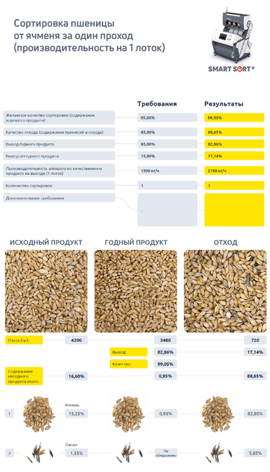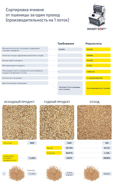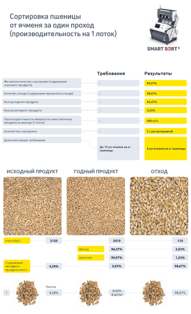 «Выставка показала возросший интерес к нашим фотосепараторам. Многие аграрии приезжали на выставку только ради того, что посмотреть и оценить SmartSort в деле. Для этого они привозили лен, пшеницу и другие продукты. Настройка аппарата на новый вид сырья занимала несколько минут, и Smart Sort успешно справлялся с сортировкой. В итоге фотосепаратор приобрело фермерское хозяйство из центральной России - на сортировку пшеницы», - рассказывает руководитель самарского представительства «СиСорт» Антон Михалко.