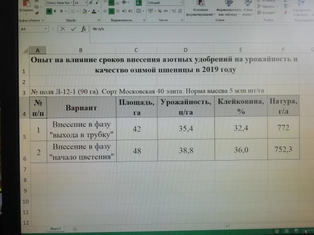 Влияние сроков внесения азотных удобрений на качество озимой пшеницы