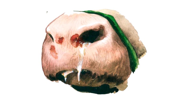 - Пузырьки и волдыри на слизистых рта, языке, носовом зеркале, сосках вымени, на коже между пальцами и по венчику копыта.