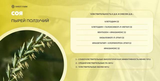 Шпаргалка чувствительности пырея ползучего к д.в. гербицидов