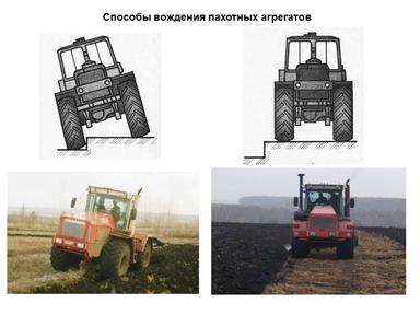 Как правило, при вождении агрегата с оборотным плугом, трактор идёт в борозде, тем самым уплотняя борозду колесом и трактор наклоняется в сторону борозды. Но при этом облегчается вождение агрегата