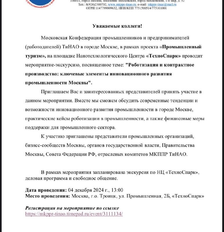 Здравствуйте 🤝 - Мы с коллегами проводим собственное мероприятие в Декабре - приглашаем всех промышленников и тех кто хочет и планирует открывать завод 🏭 - приезжайте - для связи 🤙 пишите мне на ВотсАп 24/7 - +79836255885 📲 - Евгений.