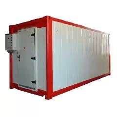 Камера изготовлена по технологии модульного здания. С тыльной стороны модуля установлена холодильная установка (опционально модульная камера может быть доукомплектована дизель - генераторной станцией с баком для топлива) . На потолке опционально устанавливаются подвесные пути (для подвешивания туш КРС) . Холодильная камера предусмотрена для уличной эксплуатации в зимний период с диапазоном температур от +45 гр. С до -45 гр. C. Установлена система зимнего пуска KVR + NRD. Для эксплуатации в зимний период, опционально предусмотрена система автоматического подогрева камеры до Т=+25 гр. C. камера поставляется в полной готовности и заправлена фреоном. В машином отделении предусмотрена вентиляция в случае установки лизель генератора или подогревателя. Толщина теплоизоляции 100мм . Температурный диапазон от +5 до -25 Со. Размеры модуля : 3000х2400х3500мм . 4500х2400х3500мм. 6000х2400х3500мм. 9000х2400х3500 мм. 12000х2400х3500мм.